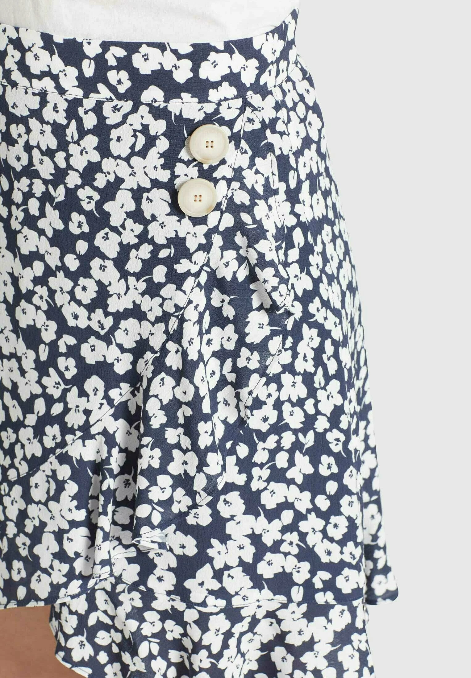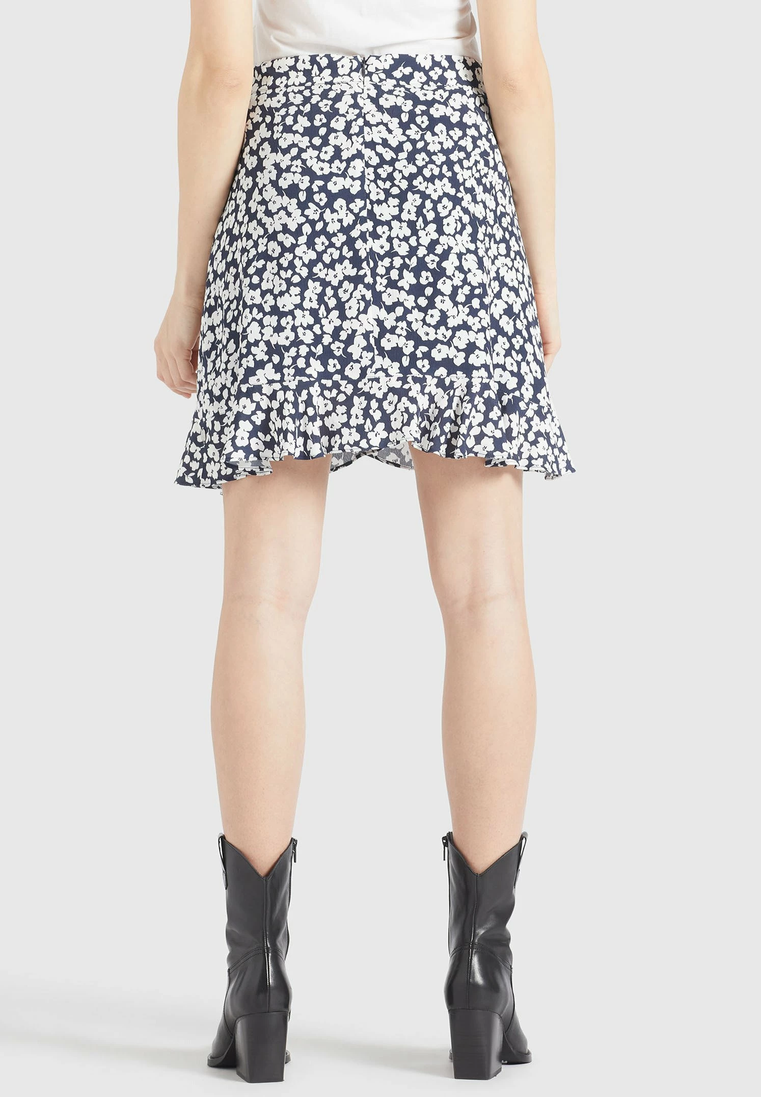 Khujo Undine – A-Lijn Rok – Dunkelblau-Weiß Geblümt